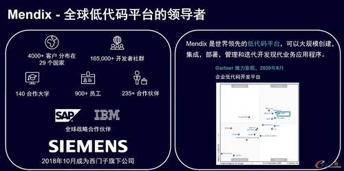 1月19日,西门子旗下企业低代码应用开发企业Mendix宣布,将其低代码软件快速开发平台引入中国市场,将为希望加快数字化转型的中国企业带来巨大优势,助力其应对新冠疫情带来的竞争和开创新业务模式的压力。西门子多年来在作为全球最大技术市场之一的中国建立了广泛的业务基础,这将为Mendix带来获取客户、资源和专业技术上的优势。