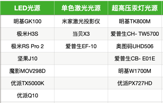 一、LED光源综合表现成熟,单色激光光源色彩并不理想